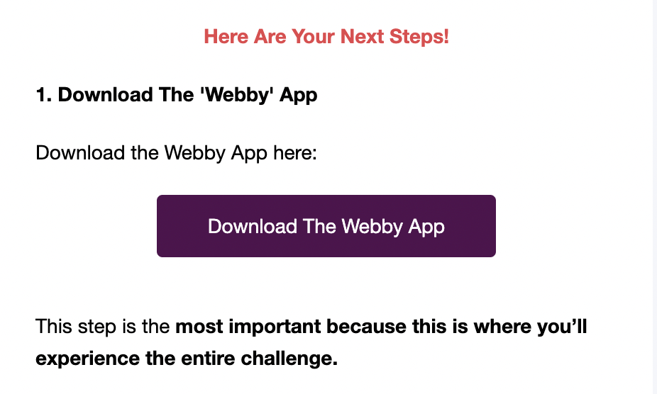 You will receive an email from notifications@webby.app with a link to download the Webby APP or download it here https://webby.app/software. In the email, there will also be a link that you can save for the day of the challenge. Please look out for the email below: