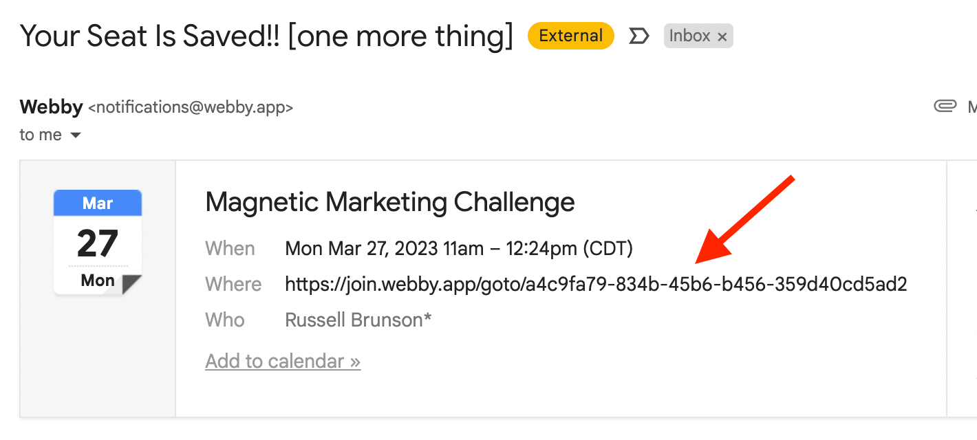 - The email will contain a link in the calendar reminder that you can click to join the challenge