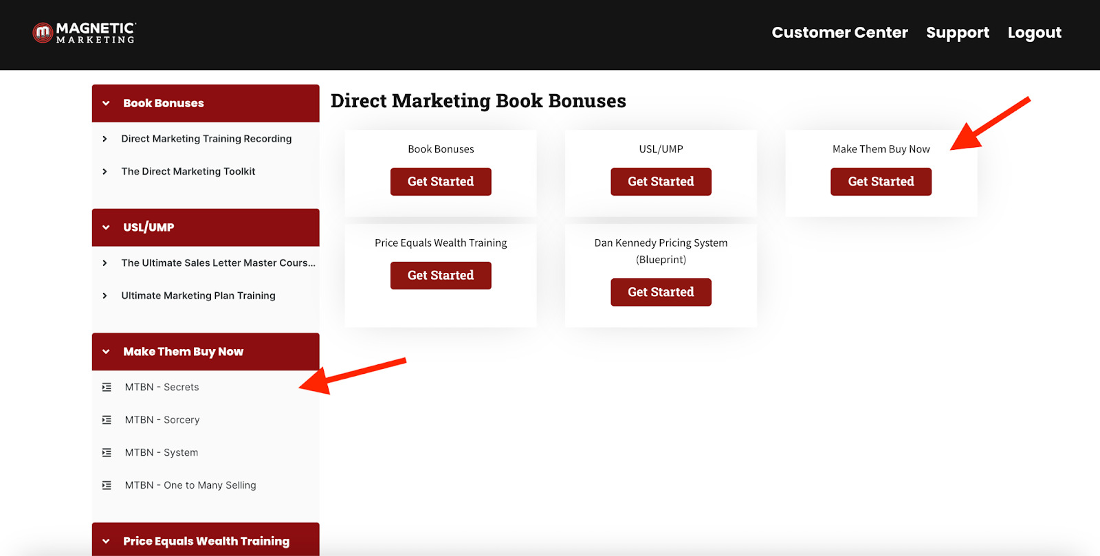 You will receive an email with your access to the Make Them Buy Now which can also be accessed by going to https://magneticmarketing.com/login. This link will take you to a login page where you will enter the email that you have purchased with and request a magic link.